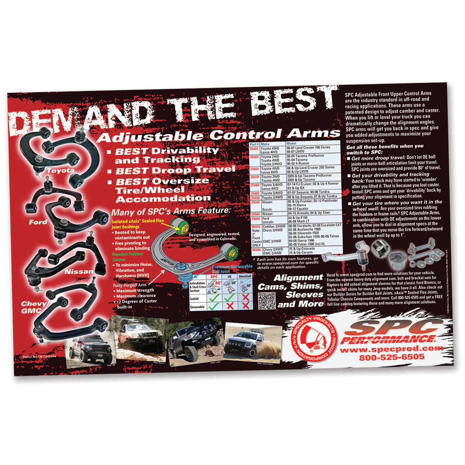 Create off-road Adjustable Front Control Arm sales with our 'Demand the Best' counter mat. This high quality counter mat features our popular adjustable upper control arms for Toyota, Ford, Nissan and Chevy. These arms are the industry standard and moreand more off-road customers are adding this important component to their builds. 11" x 17"